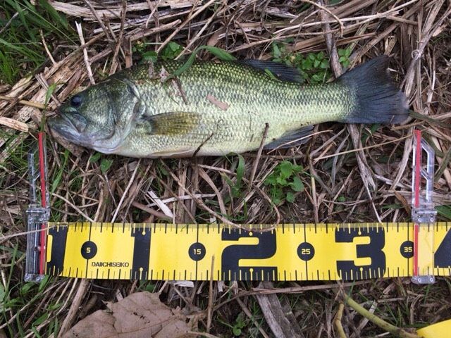 正直、対岸の流れ込みを狙おうと反対側に車を止めて、慌てて向かう途中の橋の下でのヒットでした、、、、 2投だけ投げようとして、1投目でヒット!元気なバスでランディングの際に手前の枝に引っかかって、うわーダメだぁと思ったら、まさかの外れてくれました!!
